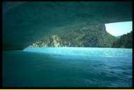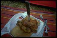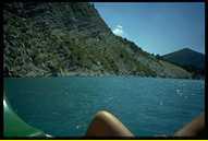 | 21.07.98 - am Verdun Einvernehmlich beschließen wir, einen Tag an diesem wunderschönen Ort zu verweilen, bevor wir weiter nach Norden ziehen. Wir nehmen die Jawa und gondeln gemütlich die kurvige Uferstraße entlang zum Strand am Stausee. Es ist noch recht früh und es ist wenig los. An einer kleinen Bude kann man Boote mieten - sofort sind wir dabei. Mit einem schnittigen Tretboot gleiten wir auf den türkisblauen See hinaus, strampeln an den steilen Felsenufern entlang, unter einer Straßenbrücke hindurch. Es ist traumhaft. Anja ist von der klaren Kühle so angezogen, daß sie es sich nicht nehmen läßt, in der Mitte des Sees vom Boot aus ein Bad im doch angenehm warmen Wasser zu nehmen. Ein bezaubernder Anblick: in leuchtend orangem Bikini gleitet sie durch das intensive Türkis. Unter ihr wohl einige hundert Meter Tiefe. Später kreuzen wir noch in eine Felsbucht hinein und machen dort Bekanntschaft mit den Tücken der Winde auf einem Bergsee. Immer wieder werden wir in die Bucht getrieben, kommen nicht wieder aufs offene Wasser hinaus. Dazu ist das Tretboot sehr schlecht zu manövrieren, uns wird fast sowas wie mulmig. Schließlich können wir uns befreien, indem wir uns an den Felsen abstoßen. Wir sind froh, daß uns keiner bei dem kleinen Malheur gesehen hat. Immerhin zwei waschechte Küstenbewohner im Tretboot in Seenot...! Einige Stellen, die wir vom Boot aus entdeckt hatten, erkunden wir nach der Seefahrt mit dem Motorrad. Über eine klitzekleine Straße tuckern wir kurzhosig durch wilde Landschaft unter brütender Sonne auf einen der Berge, die das Ufer des Sees bilden. Oben steht eine kleine mittelalterliche Kapelle. Knirschend läßt sich sogar die Tür öffnen. Drinnen ist es etwas unordentlich, jedoch scheint die Kapelle von Gläubigen immer noch benutzt zu werden. Etwas Unheimliches hat sie indes schon. Auf dem Gipfel des Berges stehen drei Heiligenstatuen, den Blick auf den unten leuchtenden See gerichtet. Ein etwas spukiger Ort. Danach fahren wir noch einmal nach Castellane. Eine uralte Stadt, die bereits im 8. Jh. erwähnt wird: enge, verwinkelte Gassen, schräge Häuser, Torbögen, eine kleine Kirche, an der alle Baustile der letzen 1000 Jahre zu finden sind. Oben auf einem Berg eine weitere Kapelle, die zentral über der Stadt thront. In den Straßen herrscht geschäftiges Treiben und Tourismus. In einem schmucken Straßencafe nehmen wir einen leckeren Cappucino zu uns und lassen einfach die Zeit vergehen. Wir müssen noch Einiges besorgen und besuchen noch einmal das riesige Einkaufszentrum vor den Toren der Stadt. Neben sauteurem Motoröl (umgerechnet DM 30,- für einen Liter!), Proviant und anderem Kram nehmen wir uns zur Feier des Tages ein mit Kräutern der Provence gewürztes, köstliches, heißes Grillhähnchen mit zum Zeltplatz. Mit einigen entspannten Bieren lassen wir den Supertag enden. | | |