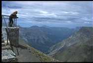 | Etappe 6 Guillestre - St. Raphael 16.07.98 09.00 Uhr Mit Pain au Chocolat und Kaffe unter freiem Himmel beginnt auch dieser Tag. Heute liegt der absolute "Höhepunkt" unserer Tour vor uns. Der Col de la Bonette, der höchste Paß der Alpen. Von Guillestre aus fahren wir über den Col de Vars. Langweilige Wintersportorte, Seilbahnen, wir halten nicht einmal an. Dann nach Jausiers, wo schon die riesige Mauer der Berge zu sehen ist, die es zu überwinden gilt. Straßenschilder zählen die 20km ab, die es bis zum Cime de la Bonette in 2802m Höhe sind. Die ersten 15 davon gestalten sich erstaunlich bequem. Als dann das Gras dünner, das Gestein rauher wird, verengt sich auch die Straße. An vielen Stellen wird gerade gebaut, dicke Rollsplittschichten bedecken die Fahrbahn. Offenbar muß die Straße jedes Jahr repariert werden. Die Fahrbahnränder sind durch Erosion und Muren und Lawinen an vielen Stellen aufgebröselt. Leitplanken oder Mauern in den Kehren hängen schief am Abhang. Oder hat jemand die Kurve nicht gekriegt? Eine grauenhafte Vorstellung! Ein, zwei Meter aus der Spur und es geht senkrecht in die Tiefe. Da bleibt nichts übrig. Vorsichtig brummen wir nach oben, überholen viele der wahnsinnigen Radsportler, die sich diese Tortour freiwillig antun. Die Berge sehen aus wie gigantische Schutthaufen, die eine überdimensionale Baggerschaufel hier abgeladen hat. Grau und braun, ohne jegliche Vegetation. Das schmale Asphaltband kringelt sich schließlich an der eigentlichen Paßhöhe vorbei zu einem Rundweg um den Gipfel des Bonette. Wie auf jedem Paß werden wir von einigen Motorradfahrern empfangen, die teils belustigt, teils bewundernd unsere Mopeds betrachten. "Ihr seid doch aber nicht DAMIT ganz aus Hamburg hier runtergekommen?!", so eine der oft ungläubig gestellten Fragen. Die Spitze des Berges erkunden wir zu Fuß. Ein schmaler Pfad führt durch groben Schotter 50m hinauf zu einer Aussichtsplattform. Klarer Himmel, 360° Rundumsicht auf ein endloses Gebirgsmeer, am Horizont irgendwo grüßen ein paar Schneeriesen. Man redet nicht viel, ist mit sich selbst beschäftigt, denkt in großen Dimensionen. Trotz eisigem Wind können wir uns kaum von diesem unglaublichen Ort lösen. Unten auf den rauhen Felszähnen verläuft an Abgründen entlang winzig klein das milimeterbreite Band der Straße. Genußvoll lassen wir uns in die Tiefe rollen. Stundenlang schwingen wir uns von einem Felseinschnitt in den nächsten, treffen verlassene Bergdörfer, überqueren auf alten Steinbrücken tiefe Schluchten. Im Rückspiegel türmen sich die riesigen Sandhaufen auf, dessen Kiesel in Wahrheit jedoch hausgroße Felsbrocken sind. Irgendwann kommen wir im Tal an. Das Grün, der dichte Bewuchs und die flirrende Hitze machen klar: jetzt ist das Mittelmeer nicht mehr weit. Wir haben die Alpen überwunden. | | |
