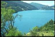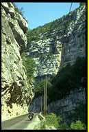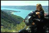 | | | 20.07.98 - Abreise vom Mittelmeer Wir verlassen die Azurküste und dringen wieder ins Landesinnere vor. Durch sanfte Hügellandschaft fahren wir über eine Hochebene in Richtung Grand Canyon du Verdon. In den Ebenen wird die Hitze unerträglich, läßt einen kaum atmen. Es müssen wohl um die 40° Celsius sein. Selbst bei voller Fahrt ohne Jacke ist nicht die geringste Abkühlung spürbar. Es ist, als hielte man sich einen Fön direkt vor die Nase. Riesige, lilafarbene, duftende Lavendelplantagen bestimmen das Bild. Man sucht jedes noch so kleine Stückchen Schatten, findet aber keines. Der große Stausee des Verdon kommt in Sicht. Hinter ihm ragt einige hundert Meter eine graue Felswand auf, der See geht in den Fluß über, der sich in einer senkrechten Schlucht verliert. Die Straße windet sich in Serpentinen hinauf, um dann sehr hoch am Hang in der Schlucht über dem Fluß entlang zu führen. Unten auf dem knalltürkisem Wasser tummeln sich winzig klein Schwärme von Tretbooten. Wunderschöne Fahrten durch immer neue Schluchten bringen uns in urig wirkende Bergstädte. Durch einen kleinen Fehler beim Abbiegen geraten wir zufällig auf eine faszinierende Ringstraße, die teilweise senkrecht in die 700m tiefen Felswände gemeißelt ist. Ein unbeschreibliches Gefühl. Ein deutscher Rennradfahrer, den wir treffen, empfiehlt uns den Weg über Castellane in Richtung Col d´Allos. In der Tat, eine traumhafte Strecke. Immer durch das Tal des durch zahlreiche Staustufen zu Seen angewachsenen Verdonflusses. Mal auf dem einen, mal auf dem anderen Ufer, arbeiten wir uns nach Norden vor. An vielen Stellen sehen wir Leute in Gebirgsbächen oder Seen baden. Gegen Spätnachmittag kommt uns ein sehr sympathischer kleiner Campingplatz gerade recht. Ein schöner Ort, uralt, in der Nähe des Sees, hier wollen wir zwei Tage bleiben. Während ich noch einmal nach Castellane düse, um ein paar Einkäufe zu erledigen, begibt sich Anja auf Fotosafari an den See. Ich treffe eine Gruppe unangenehmer deutscher Biker, die ausschließlich für die Beschaffenheit des Asphalt Augen haben. Sie erzählen mir, daß es in Deutschland immer noch am Regnen ist... | | |