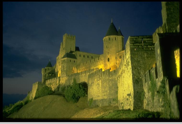 Diese Anlage will Anja unbedingt auch in der Dunkelheit erleben - ohne die vielen Touris, bei glimmender Beleuchtung. Mit einer guten Flasche Wein im Strassencafé geniessen wir die Athmospäre und schleichen durch die nächtlichen Gemäuer zurück zum Campingplatz. |