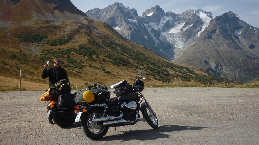 Große Runde: Einmal den Parc National des Ecrins umfahren. Weite Strassen zwischen mächtigen Gebirgszügen. Wir lassen die Cruiser genüsslich durch diese Landschaft gleiten und träumen. Plötzlich tanzt Thorsten vor mir wild auf dem Motorrad herum, kommt hektisch quietschend am Straßenrand zum Stehen. Eine Wespe hat den Jethelm genutzt und ihm im Naseninneren gestochen. Aua. Der Taschentuchvorrat wird aufgebraucht, er fühlt sich wie taub nach dem Zahnarzt, aber gucken und atmen klappt irgendwie. Fahren sowieso. Also geht es mit laufender Nase weiter zum Col de Lautaret.