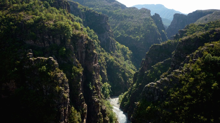 Nur ein paar sanfte Regenwolken fielen nachts auf das Zelt. Den Frühstückstisch zerren wir in ein Fleckchen Sonne, denn ohne diese wird die Nase blau. Der Himmel ist es schon wieder. Also starten wir zur Seeumrundung. Hoch über dem unnatürlich türkisen Wasser führt der Weg entlang, eine Traumstrecke. Auf der Karte hatten wir eine Schlucht im Süden entdeckt, zu der wir jetzt abbiegen, es geht ein gutes Stück öde durch eine Agrarhochebene Richtung Digne le Bains, dann öffnet sich die schmale Schlucht nur kurz in romantischer Wildheit. Das Café mit dem dringend nötigen Croissant finden wir hier nicht, denn hier ist nichts. Wir drehen hungrig bei und setzen die Seerunde fort. Lautlos über uns treiben bunte Heere von Paraglidern durch das tiefe Blau, die noch besser als wir das Postkartenpanorama im Blick haben. Auf dem Rückweg bläst uns ein strammer Mistral entgegen, schön für den blauen Himmel, aber unser Zelt hängt wie ein Fallschirm an den restlichen Heringen. Eilig wird es an einem geschützteren Platz festgetackert. Im Windschatten köcheln wir eine heisse Suppe, aber als die Sonne hinter den Bergen verschwindet, und das tut sie zur Tagesschau, ist es vorbei mit der Gemütlichkeit. Um 21h schliessen wir das Zelt von innen.